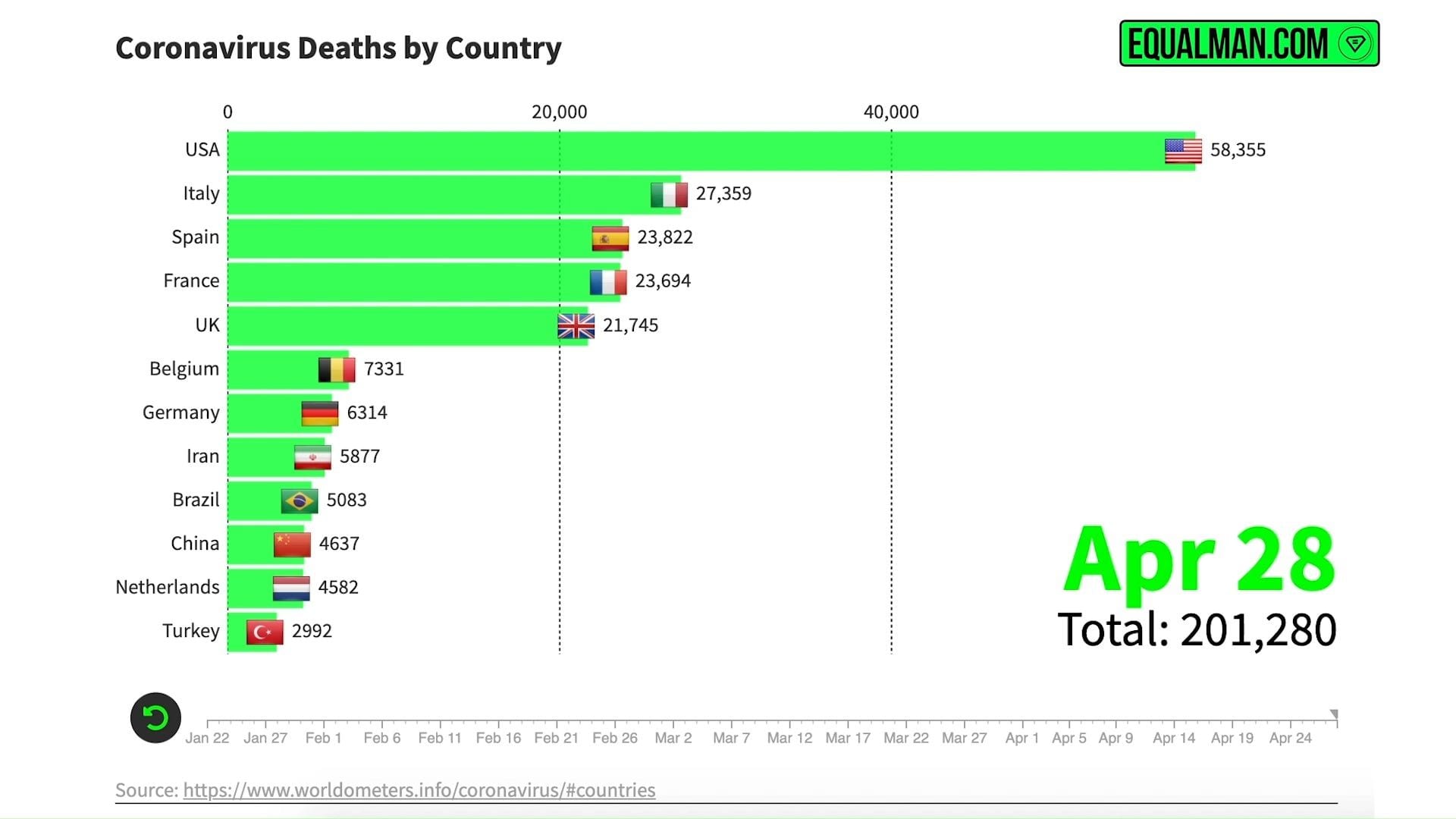 These Coronavirus Cases and Death Graphs are being made by our animators at Equalman Studios and show the spread of the coronavirus from February 15 to today in time lapse. We hope they help!
